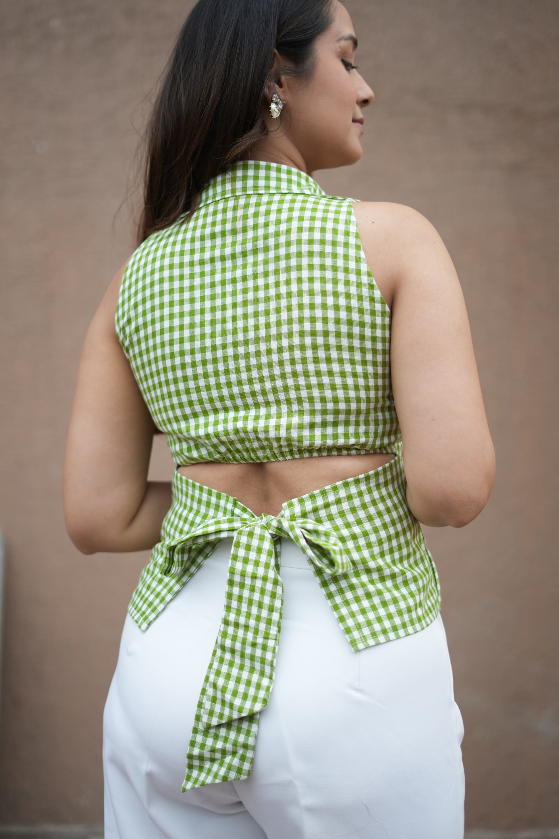This matcha gingham top is designed to turn heads with the sweetest back bow surprise.