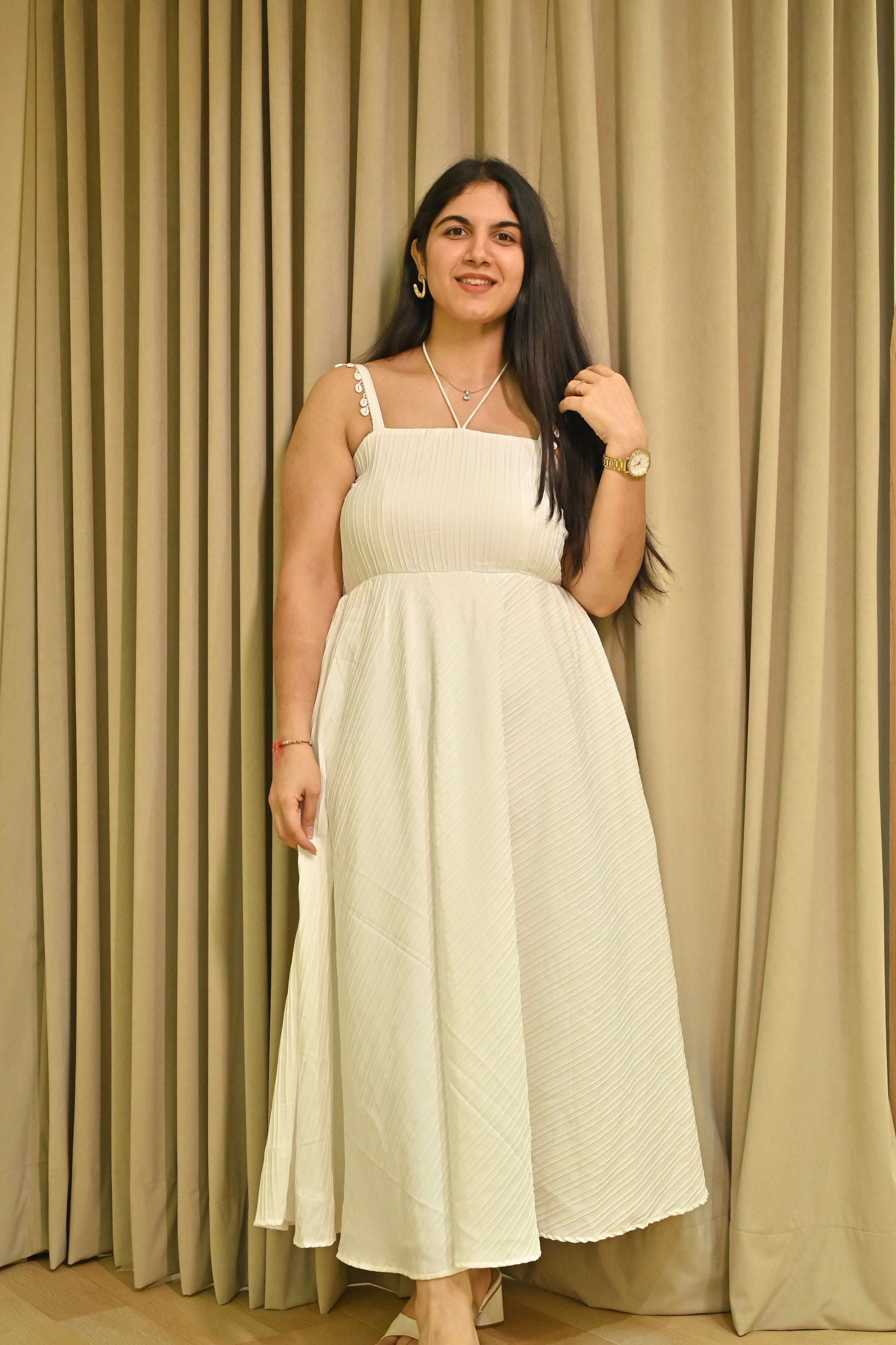 The perfect blend of grace and functionality with our White Crush Maxi Dress. Adorned with shell-detailed straps, practical pockets, and featuring a smocked back for a comfortable fit—this halter neck dress is your go-to for elegance with ease.